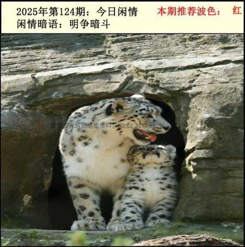 124期:今日闲情:明争暗斗:(推荐红波) 解释:图是一大一小两只豹子看起来应该是豹妈妈带着小豹子在洞口玩耍,两只豹子为一家故解家禽肖-牛马鸡狗猪羊。 解特肖:牛马鸡狗猪羊 |